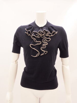 allureville/アルアバイル/トップス/ニット/半袖/薄手/ネイビー/フリル/サイズ2【中古】